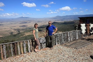 About 20km out of Nairobi we reached the top of the Great Rift Valley and stopped at a suitable photographic place. This happened to be right next to a curio shop selling raw sheep skin hats and full skins… amongst other things. The friendly shop owners engaged us in conversation and even offered to take a photo of us. We looked at their wares with some interest but when it was clear that we were not going to buy anything, they stopped asking or offering. This was in contradiction to what we had been told about Kenya and its people and yet again I was pleasantly surprised about the country which did not deserve the reputation we had been told about.