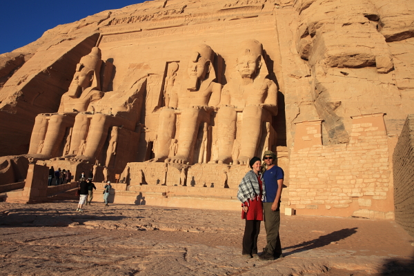 There was no real great rush to get up early that morning. Tourist, and it seemed busses and taxis as well, still had to drive in convoy from Aswan to Abu Simbel. The convoy we decided to miss left Aswan at 4:00 with a plan to arrive at the great temples at 7:00. We much preferred the idea of joining the 11:00 convoy and spend the night on the other side. So we got up late, abused the wonderful shower one last time and had another basic but filling breakfast. The owner of the restaurant even gave us extra cheese and coffee that morning.